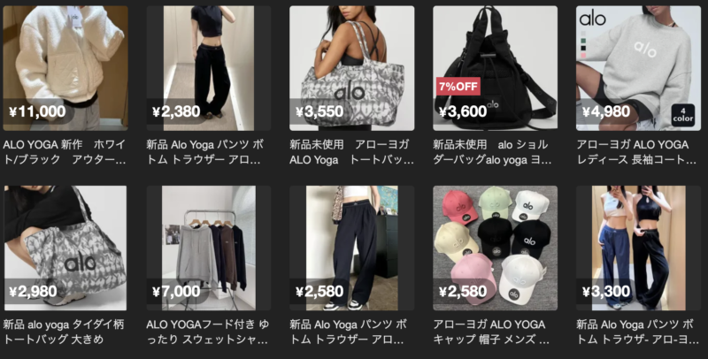 フリマアプリのメルカリでも多数のaloYOGA製品が出品されています。