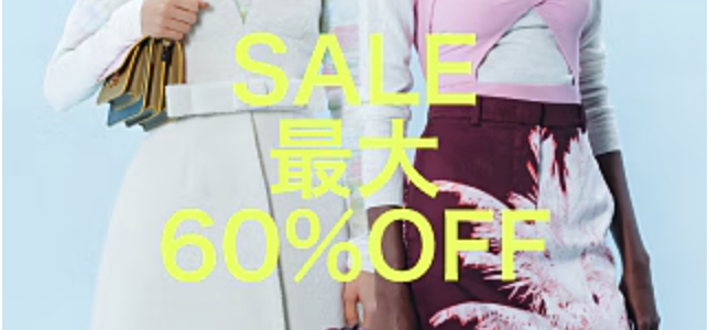 現在は、最大60%OFFのセールが開催されています。また、全シューズ60%OFFも同時開催されていますのでこの機会にお気に入りの一足を見つけてみてください!
