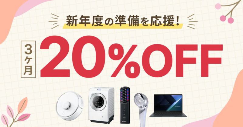 2月28日までの期間限定キャンペーンです。新年度の準備に必要な家具家電がお得にレンタルすることができます!