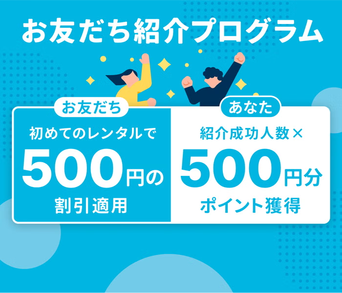 お友達紹介プログラムを活用してレンティオを紹介すると、紹介を受けた方は500円分が割に❤️